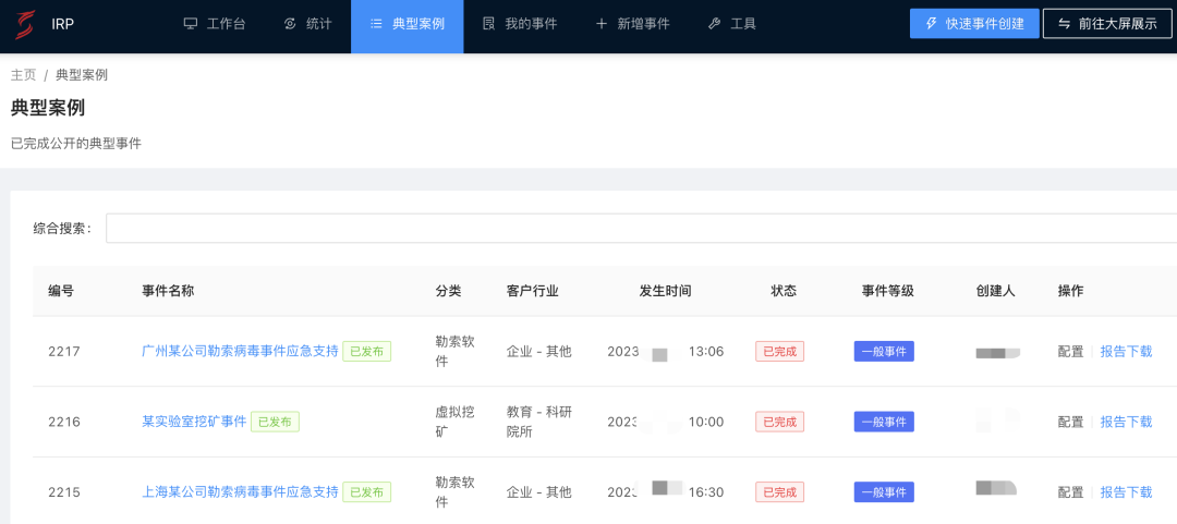 目前,安恒信息IRP平台是公司统一应急响应平台,也是MSS远程应急响应重要依托支撑。自上线至今,已帮助金融、医疗、教育、政府等13个行业累计处理应急响应300余起,帮助MSS远程应急响应处理50余起。