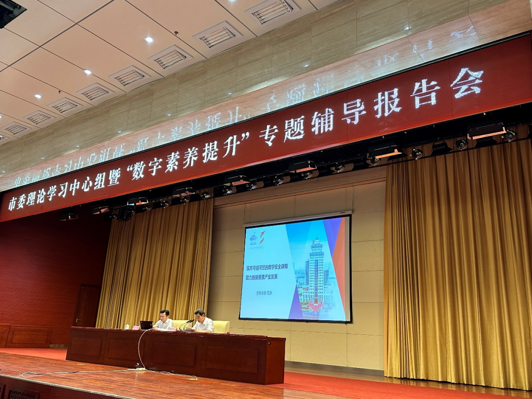 近日,山东省德州市委理论学习中心组暨“数字素养提升”专题辅导报告会举行。德州市委书记、市人大常委会主任田卫东,市政协主席卜祥联,市委副书记苑衍刚等市级领导出席报告会。安恒信息董事长范渊受邀出席报告会并作专题辅导报告,围绕数字中国建设整体布局规划、数字经济和数字安全方面作深入浅出的解读。