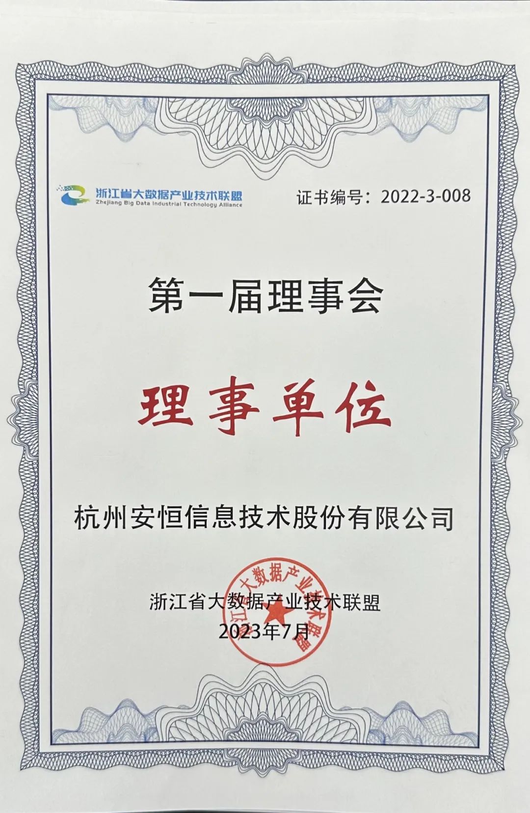 安恒信息当选浙江省大数据产业技术联盟理事单位