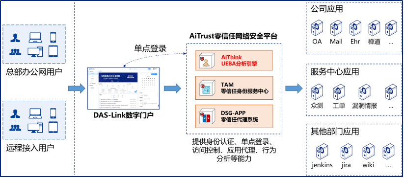 安恒信息针对城市商业银行也制定并落实了专属方案,通过零信任第一阶段的落地,安恒信息AiTrust团队实现了对于移动办公接入终端较高的安全性以及国产化对接推进,并对接行内同步建设的IAM系统,达成了终端设备、用户账号、访问基线一体化动态安全策略的初步目标。并将在后续引入UEBA等人工智能分析技术,持续优化终端的安全画像,以减少行内业务系统和重要数据资产外泄的风险。