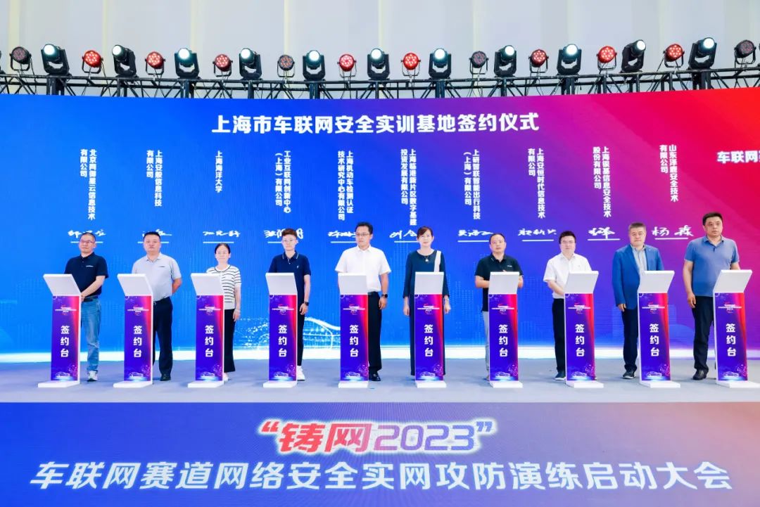 上海安恒智慧和上海安恒时代也积极响应上海市主管部门的倡导,参与了一系列专项行动。8月21日,“铸网2023”车联网赛道网络安全实网攻防演练启动大会在临港中心举行。上海安恒时代参与上海市车联网安全实训基地的签约仪式,赋能车联网安全人才培养。