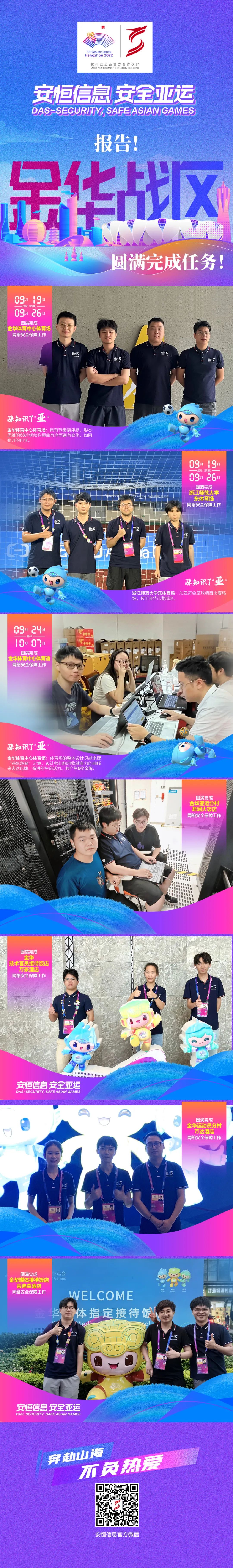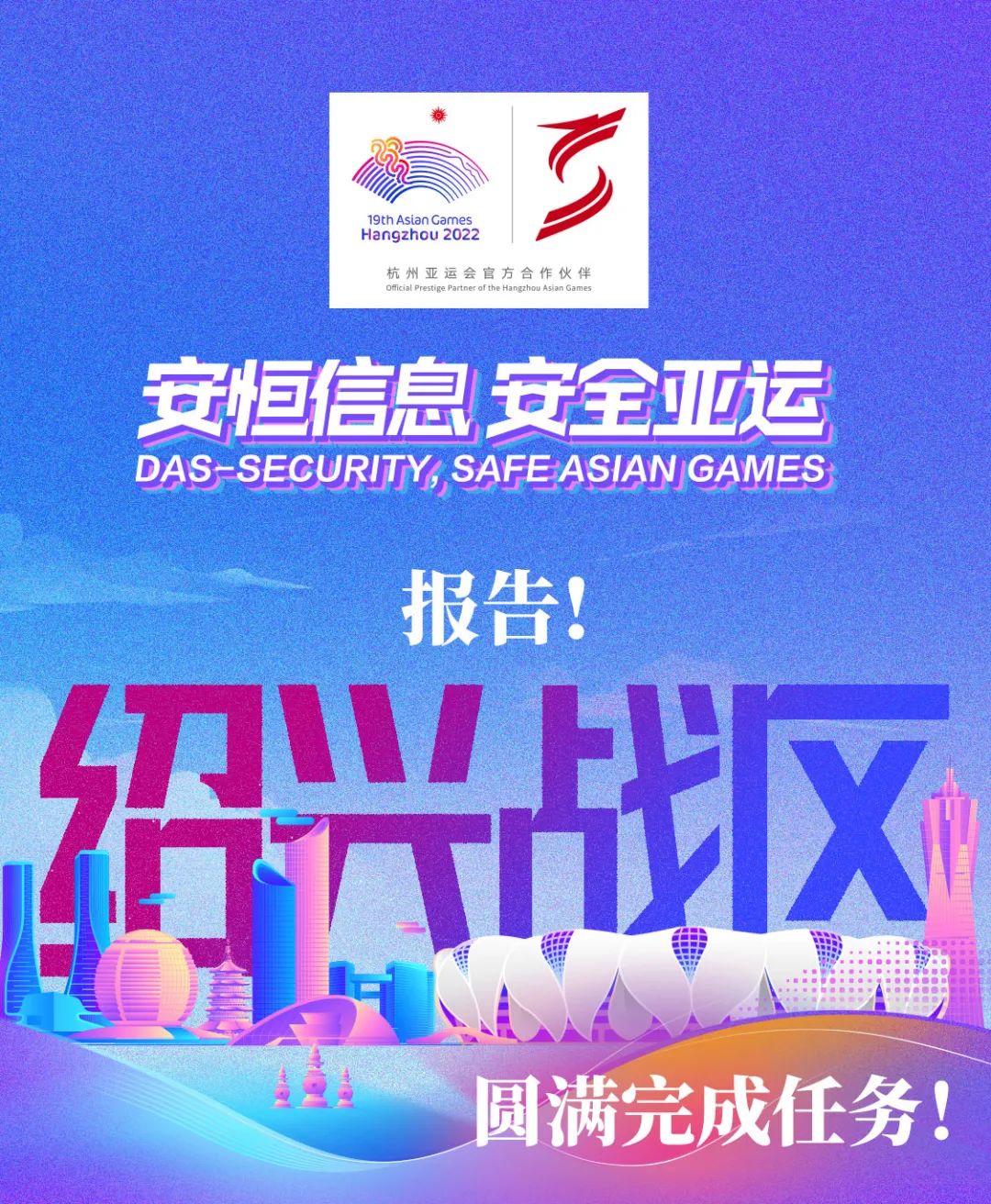 随着本届亚运会步入尾声,安恒信息六大主战区中,继温州、宁波之后,金华、绍兴、湖州三大主战区也陆续完成网络安全保障任务,画上圆满句点。至此,除即将举办闭幕式的主办城市杭州外,其余五大战区已全面告捷!