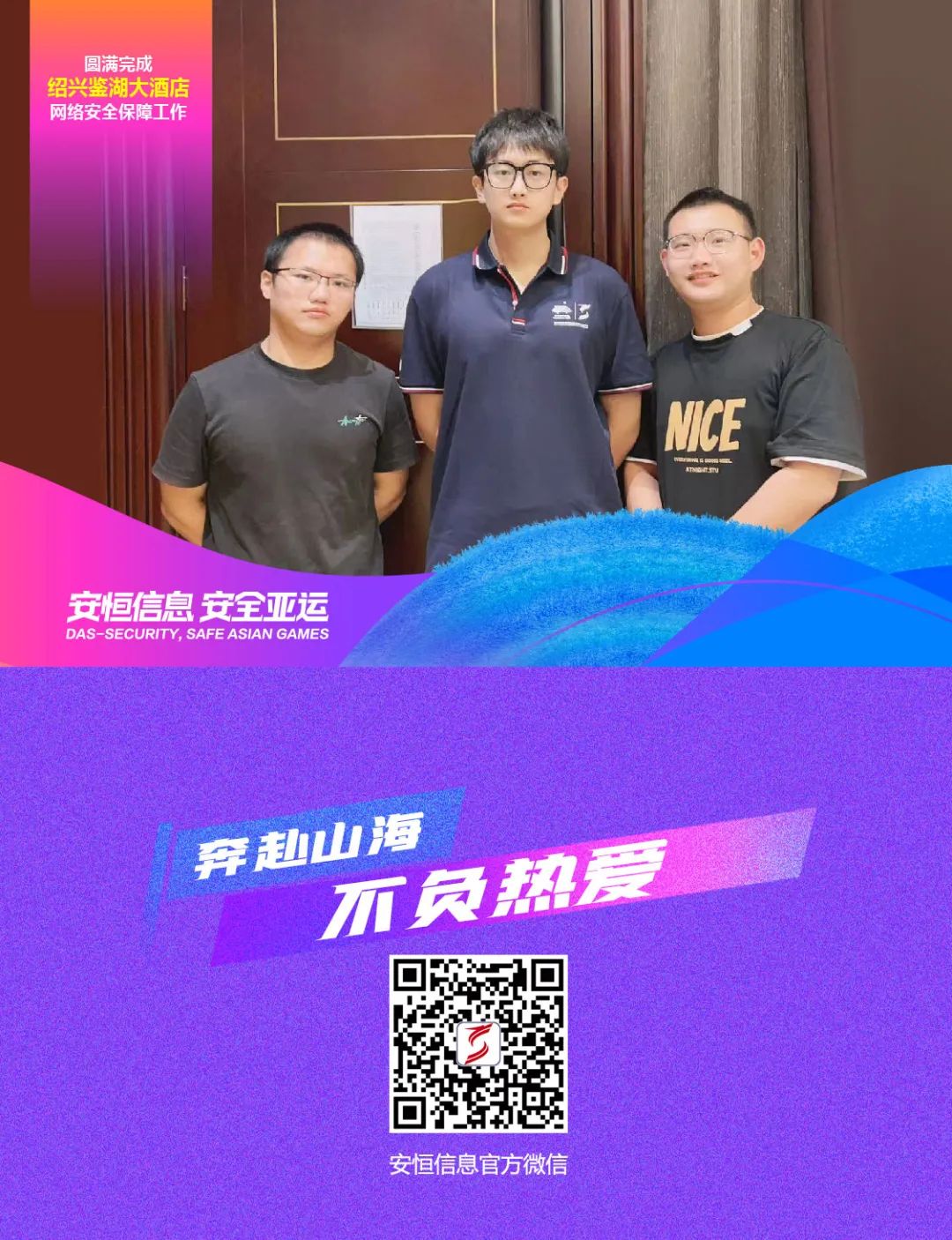 安恒信息,安全亚运。盛事尚未落幕、网安仍在继续。主办城市杭州仍沐浴在赛事欢呼里,安恒信息也将始终保持高度专注,在最后时刻仍未曾有一丝懈怠,继续肩负使命、履行承诺,自始至终守护杭州亚运会的网络安全。