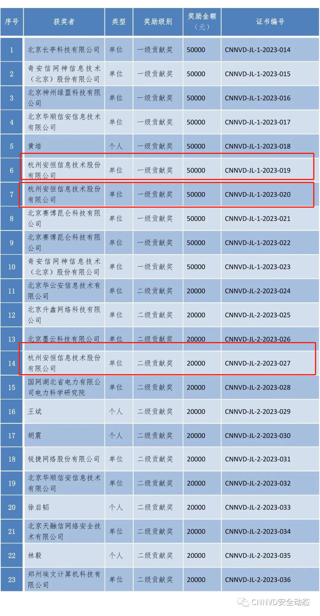 不断突破,安恒信息入选2个CNNVD一级贡献奖!