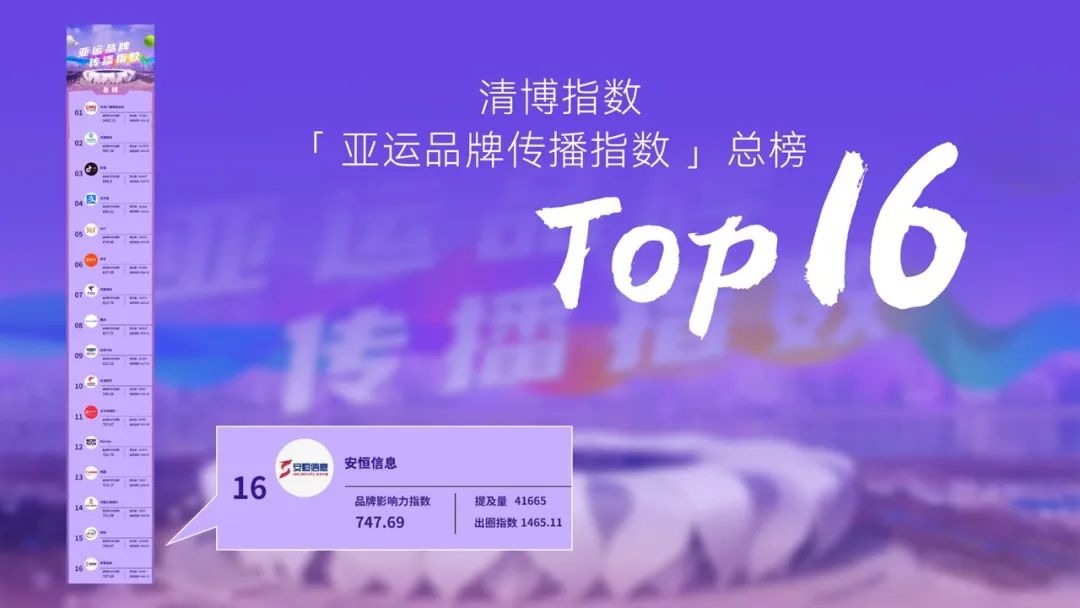 段平霞提到,在清博指数发布的最新的“亚运品牌传播指数”总榜数据中,安恒信息进入百强榜单,并成为唯一一个进入TOP20的非消费类中国品牌。她对此总结了三个关键词:借势而进、顺势而为、积势而行。