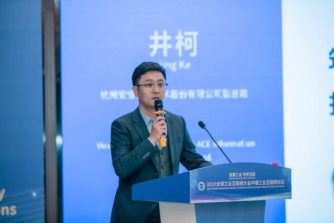 在10月18日下午举行中德工业互联网高端论坛上,安恒信息副总裁井柯发表了题为《筑牢“产业转型”安全关,护航“新型工业化”发展》的演讲。他指出,产业转型的必备要素是工业互联网的建设应用,需要以数据资源为核心,运用新一代信息技术,融合企业侧和政府侧安全需求,贯通企业生产端与用户端,为企业生产经营提供数字安全赋能,为产业生态建设提供数字化安全服务,为经济治理提供数字安全手段。