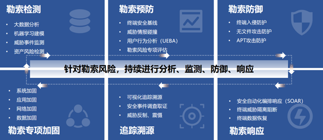 对于大型企业,往往勒索攻击所引起的业务重创和系统瘫痪导致营收损失远高于支付的赎金,因此企业亟需行之有效的解决方案来应对勒索组织的入侵。