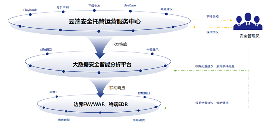 ◆ 基于攻击面治理勒索防护,从海量告警事件分析研判出勒索病毒事件后,云端专家通过远程和现场支持的形式协助分析和协助处置。输出处置建议,以及获取授权后开展安全处置工作。