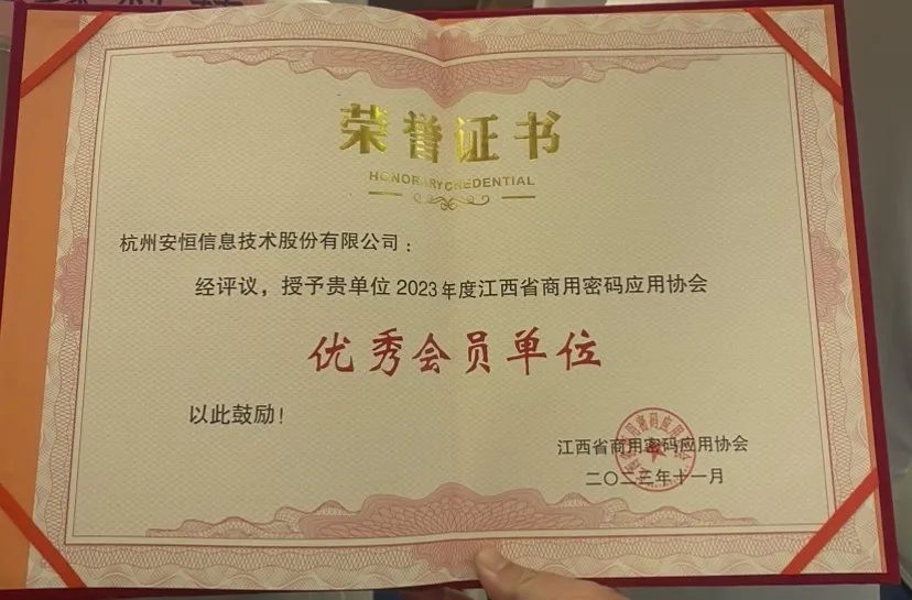 在此次论坛上,安恒信息荣获了由江西省商用密码应用协会颁发的优秀会员单位荣誉证书。这是对安恒信息技术实力以及所取得的成就的认可。安恒信息一直致力于为用户提供全方位、多层次的网络安全解决方案。在商用密码领域,安恒信息拥有丰富的经验和领先的技术,为各行各业提供了安全、可靠的密码服务。通过参与本次论坛,安恒信息展示了在商用密码领域的实力和成就,进一步巩固了其在市场中的地位。