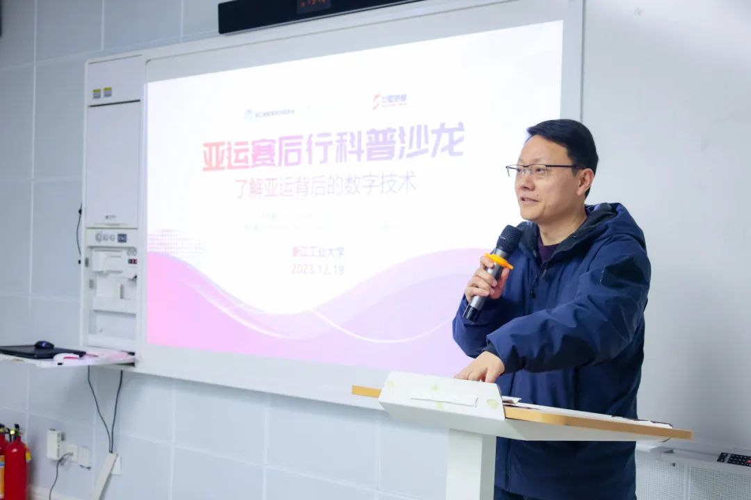 沙龙由浙江工业大学计算机学院党委副书记、纪委书记毛诗焙主持。计算机学院副院长陈铁明首先发表致辞,他表示此次亚运赛后行科普活动旨在了解亚运背后的故事,将亚运的丰富内涵、精湛技艺以及背后的数字技术传递给更多的人。致辞中,他向在场青年提出三点希望:希望青年人发扬亚运精神,坚持不懈、奋斗不息;在日新月异的社会中,拥抱生活、积极应变;融会贯通、学以致用,成为网络安全的宣传者和实践者。