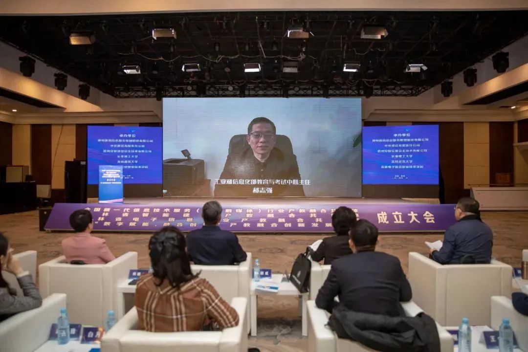 工业和信息化部教育与考试中心主任郝志强、高校毕业生就业协会数字产业与就业工作指导委员会秘书长胡永强向共同体成立表示祝贺并讲话。