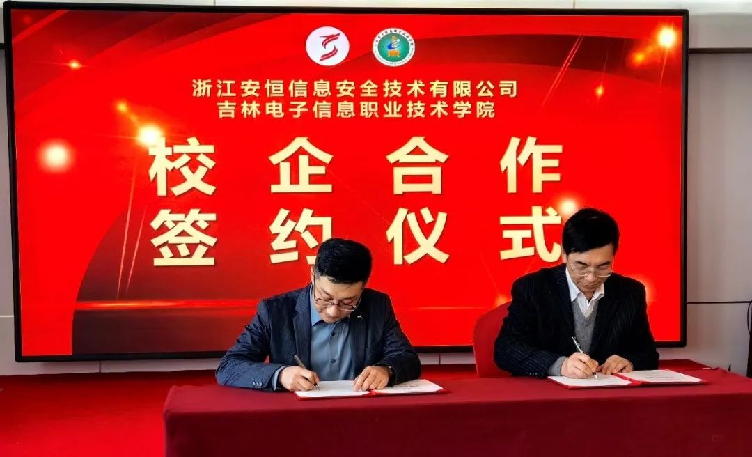 在分论坛中,樊睿代表安恒信息完成与吉林电子信息职业技术学院校企合作签约,双方将在未来展开深度合作,携手共育网络安全复合型人才。