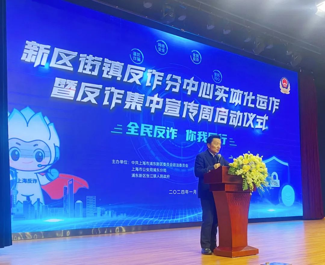 1月8日下午,上海市浦东新区张江镇反诈分中心实体化运作正式启动。同日,上海市浦东新区警方反诈集中宣传周活动也同步开始。上海市浦东新区副区长、市公安局浦东分局局长马雪波出席现场。此次活动由中共上海市浦东新区委员会政法委员会、上海市公安局浦东分局和浦东新区张江镇人民政府共同主办。安恒信息董事长范渊受邀参与活动。