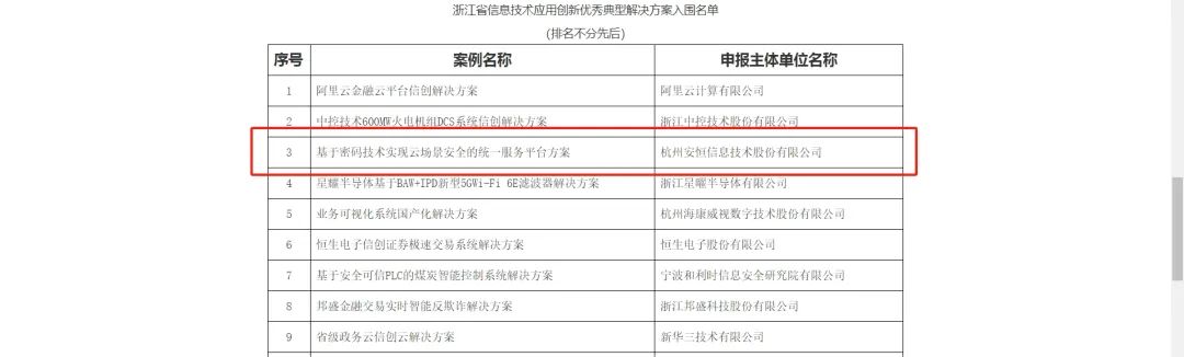 “基于密码技术实现云场景安全的统一服务平台方案”入选2023年浙江省深化信息技术应用创新优秀典型案例。