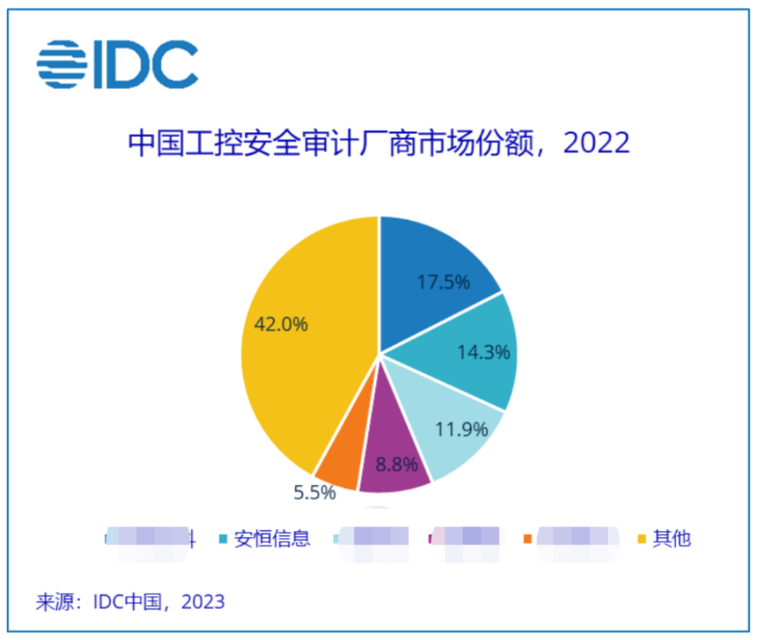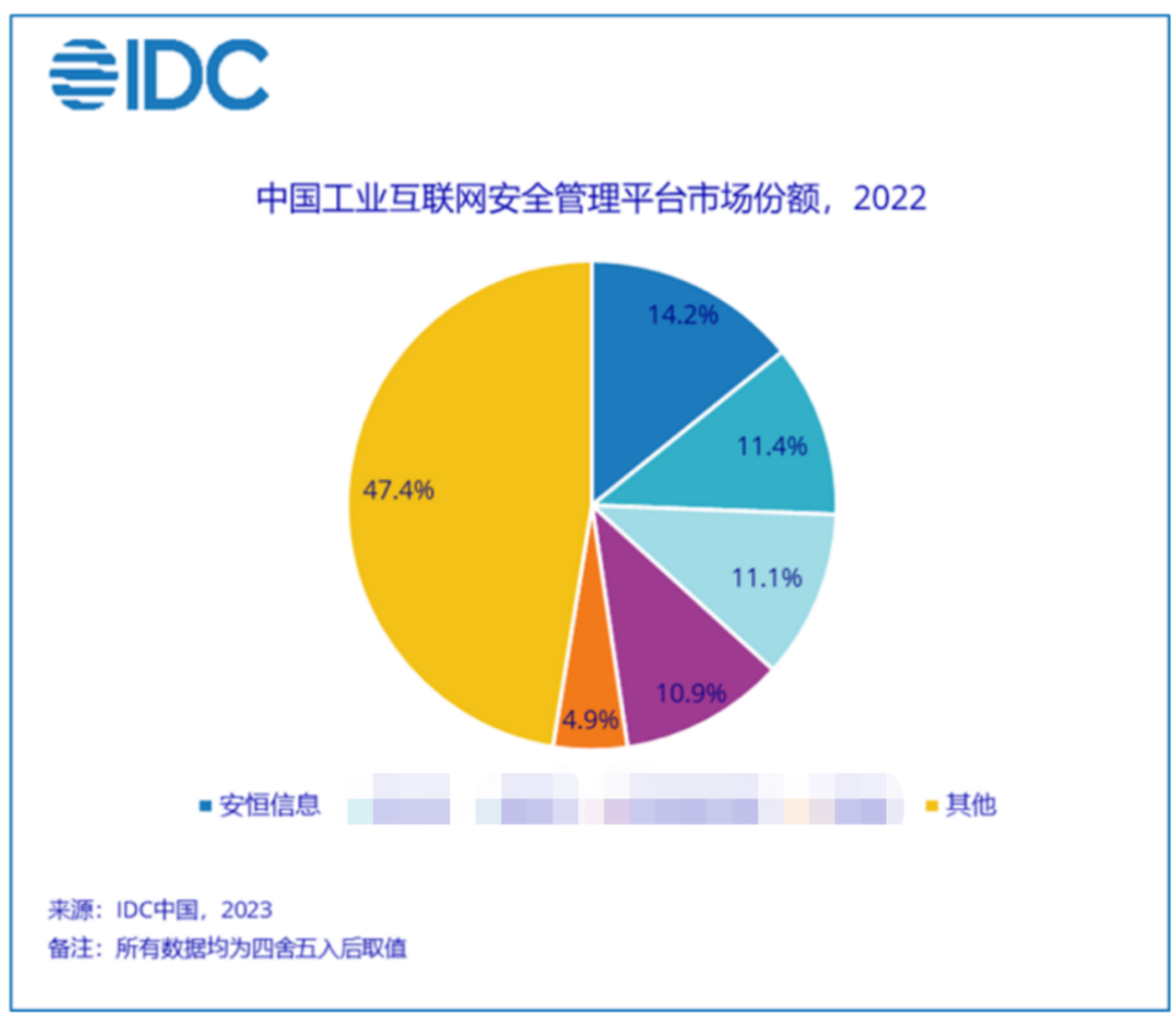 ➣在国际著名咨询公司IDC发布的《中国工业互联网安全管理平台市场份额,2022》中,安恒信息以 14.2%的市场份额位列工业安全管理平台市场第一;