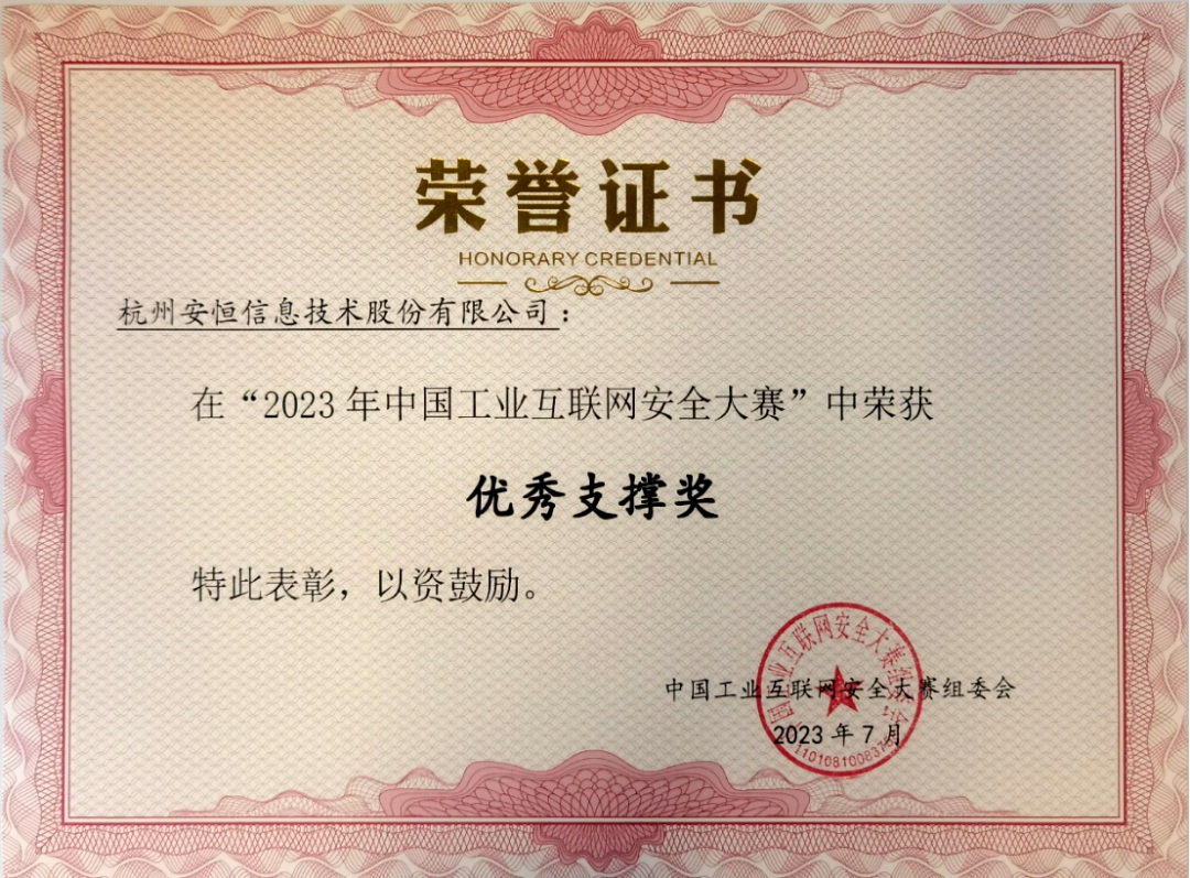 ➣2023年中国工业互联网安全大赛优秀支撑奖