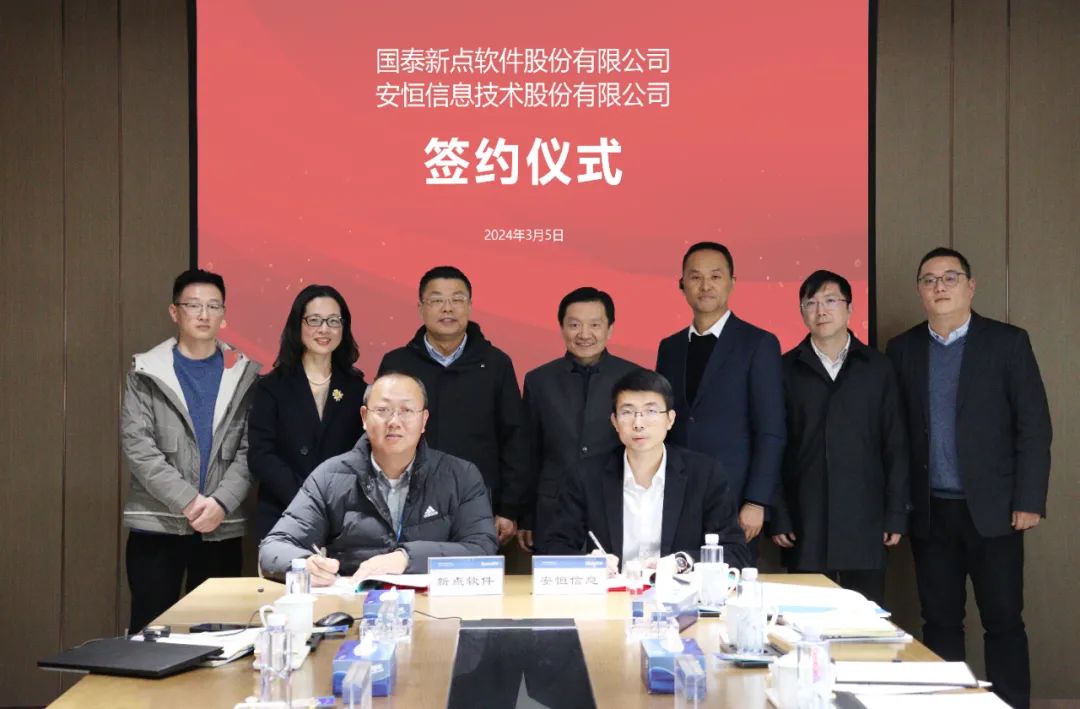 3月5日,安恒信息与国泰新点软件股份有限公司(以下简称“新点软件”)正式签署战略合作协议,达成战略合作伙伴关系,共绘合作新篇章。