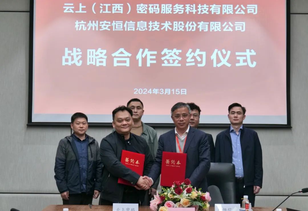3月15日,安恒信息与云上(江西)密码服务科技有限公司(以下简称“云上密码”)正式签订战略合作协议,双方将聚焦密码与信创领域展开全面合作。