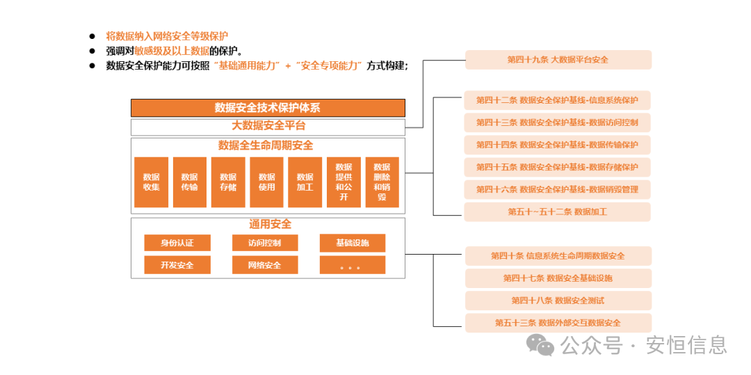 四是健全数据安全技术保护体系,从数据安全基础设施建设、数据安全能力左移、数据安全保护基线、数据安全测试、数据加工等维度提出了技术实现要求。