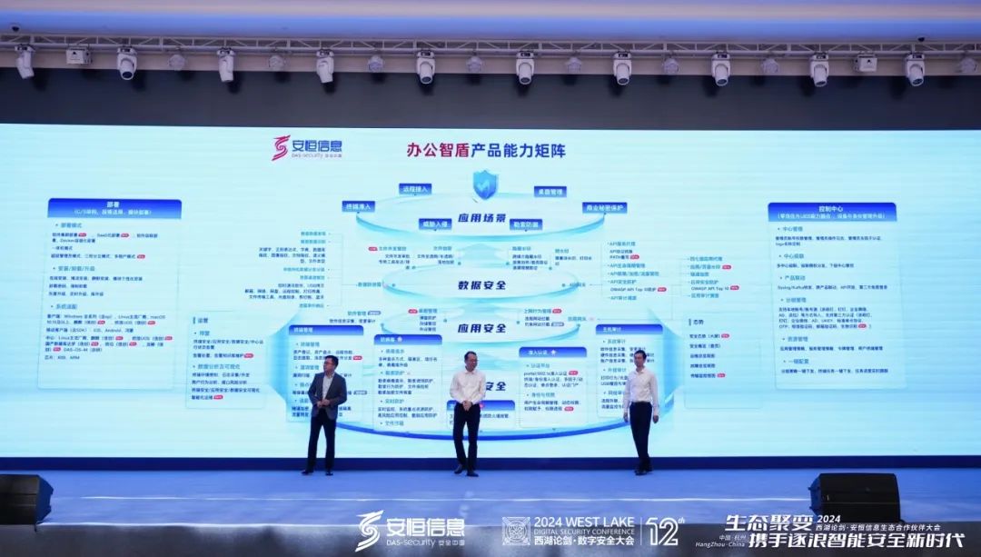 会上,安恒信息办公一体化安全产品办公智盾正式发布。安恒信息副总裁杨绍波表示,安恒信息为助力生态合作,针对办公终端进行了全面升级,为用户提供了办公安全的“全家桶”,创新性地将杀毒、准入、零信任管控、桌面管理、主机审计、入侵威胁检测、数据防泄漏和基线检查等核心技术集于一体,满足用户各种场景化的需求。此外,推出通用授权式计费模式,让生态伙伴可以更为灵活地为用户提供综合方案。