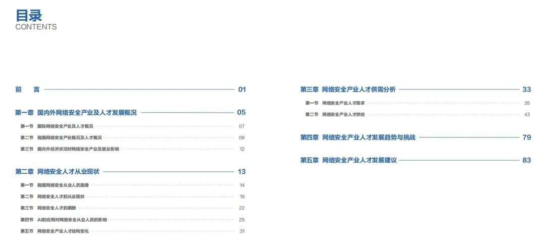 鉴于此,报告在全面分析当前网络安全产业人才现状之余,重点聚焦AI时代下网络安全产业人才培养与发展策略,关注网络安全人才在AI时代的成长、需求及应对,并在最后从学科教育、产教融合、产业聚集等角度对当前网络安全人才的发展提出专业建议。