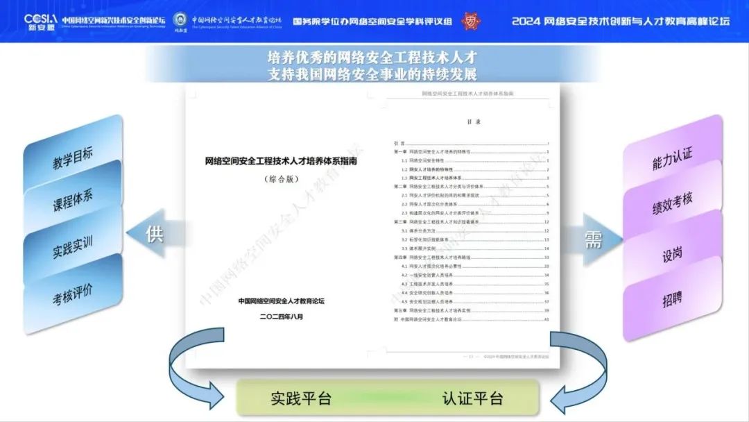 由中国网络空间安全人才教育论坛(网教盟)发起和指导,安恒信息参与编写的《网络空间安全工程技术人才培养体系指南(综合版)》(又称“白皮书”),自2024年8月在“2024网络安全技术创新与人才教育高峰论坛”发布以来,经过广泛征求政府、高校、企业等相关行业领域专家意见,编写组多轮迭代修订,于近日完成最终统稿。