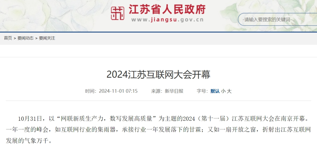 江苏省人民政府官方网站报道,2024(第十一届)江苏互联网大会在南京开幕,安恒信息董事长范渊接受采访并分享观点。