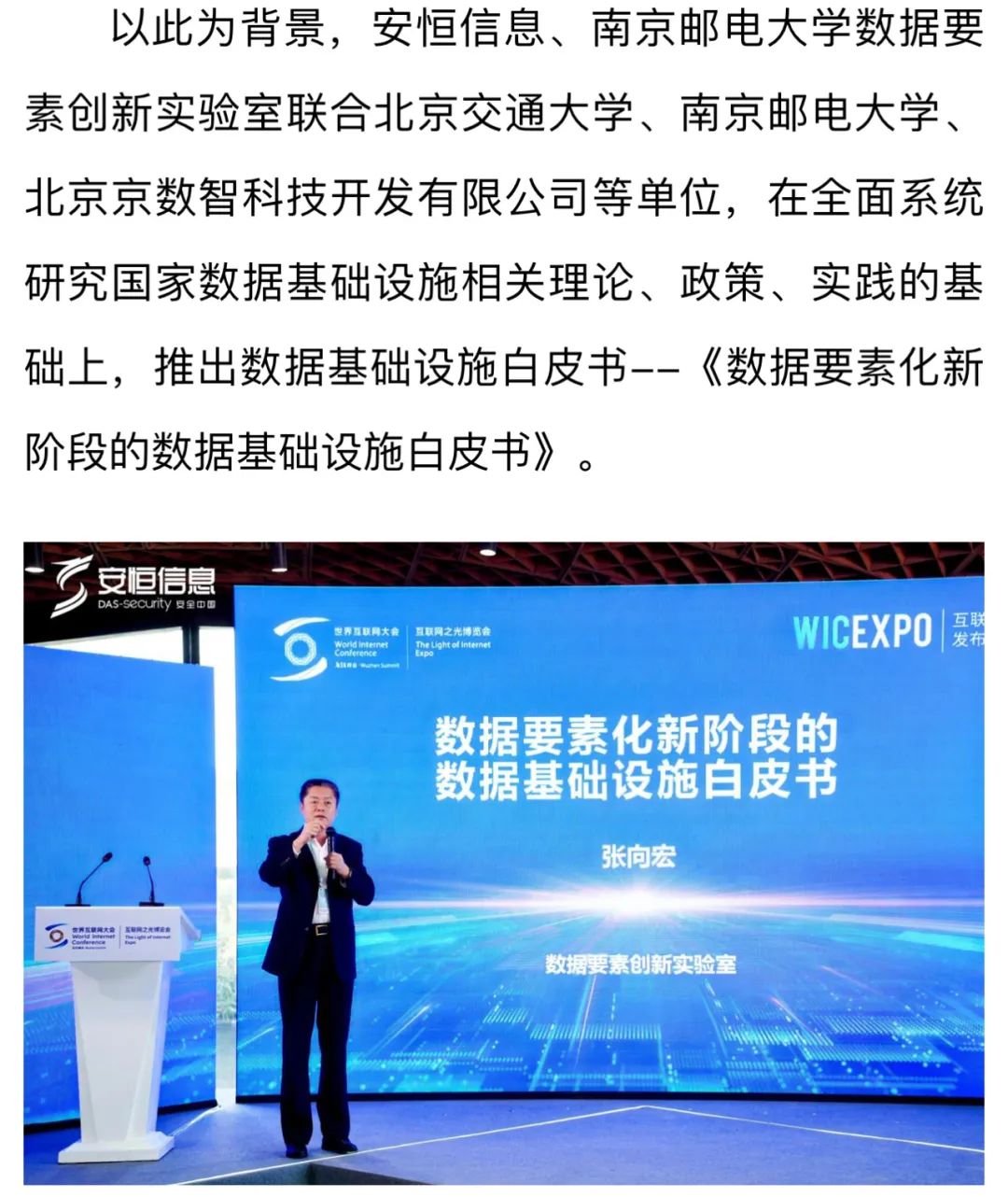 新华网、光明网、经济日报、人民网报道,安恒信息、南京邮电大学数据要素创新实验室联合北京交通大学、南京邮电大学、北京京数智科技开发有限公司等单位,推出《数据要素化新阶段的数据基础设施白皮书》。