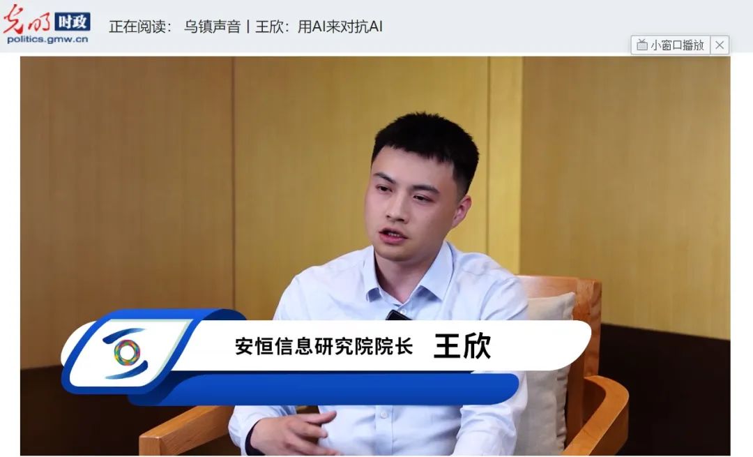 2024年世界互联网大会乌镇峰会期间,安恒信息高级副总裁、研究院院长王欣接受光明网、中国经济网、浙江之声、21世纪经济报等媒体专访。
