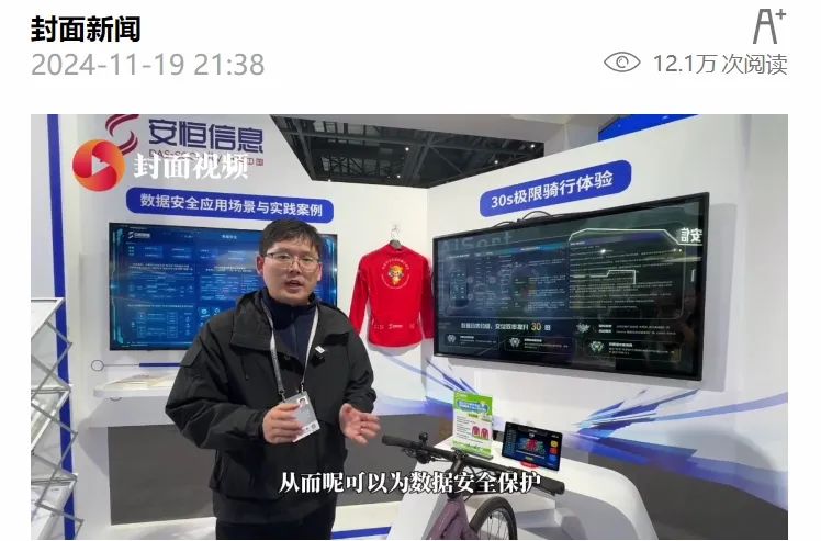2024年世界互联网大会“互联网之光”博览会期间,封面新闻记者参观安恒信息展位并采访安恒信息数据安全产品行销总监王士涛。
