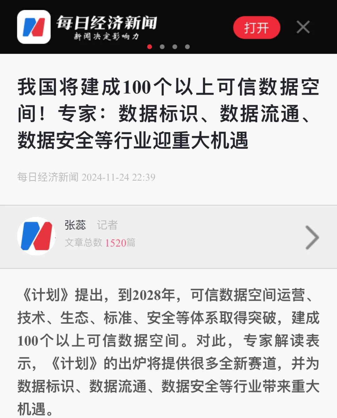 《每日经济新闻》记者采访安恒信息首席技术官刘博,围绕国家数据局印发《可信数据空间发展行动计划(2024—2028年)》展开讨论。
