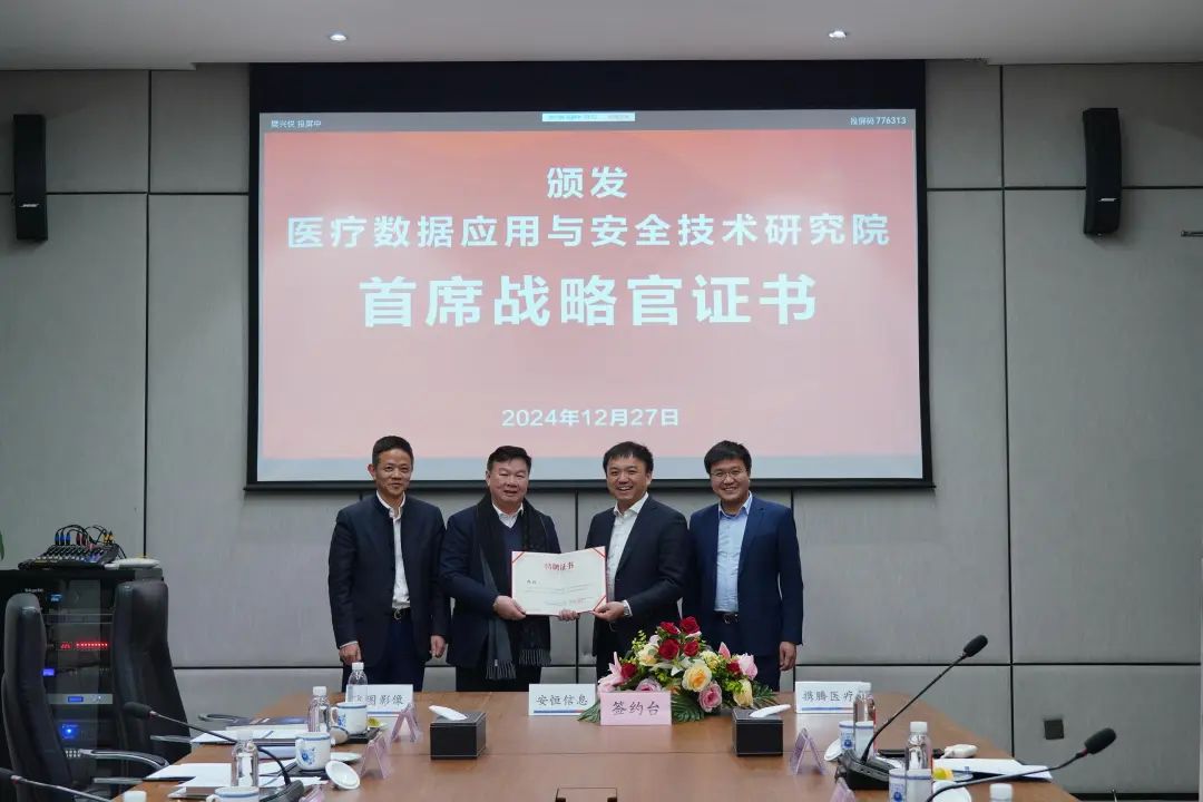 未来,三方将全面加强“总对总”战略合作,积极将安恒信息安全能力融入各自解决方案网络和数据安全能力,积极拓展医疗行业市场。同时,三方联合成立医疗数据应用与安全技术研究院,紧紧围绕医疗产业数智化转型这一核心目标,深入开展研究应用与产品孵化工作,并聘请郑昶院长为研究院首席战略官。