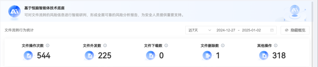 此外,基于恒脑智能体底座,可对文件流转的风险信息进行智能研判,形成全面可靠的风险分析报告,为安全人员提供重要数据支持。
