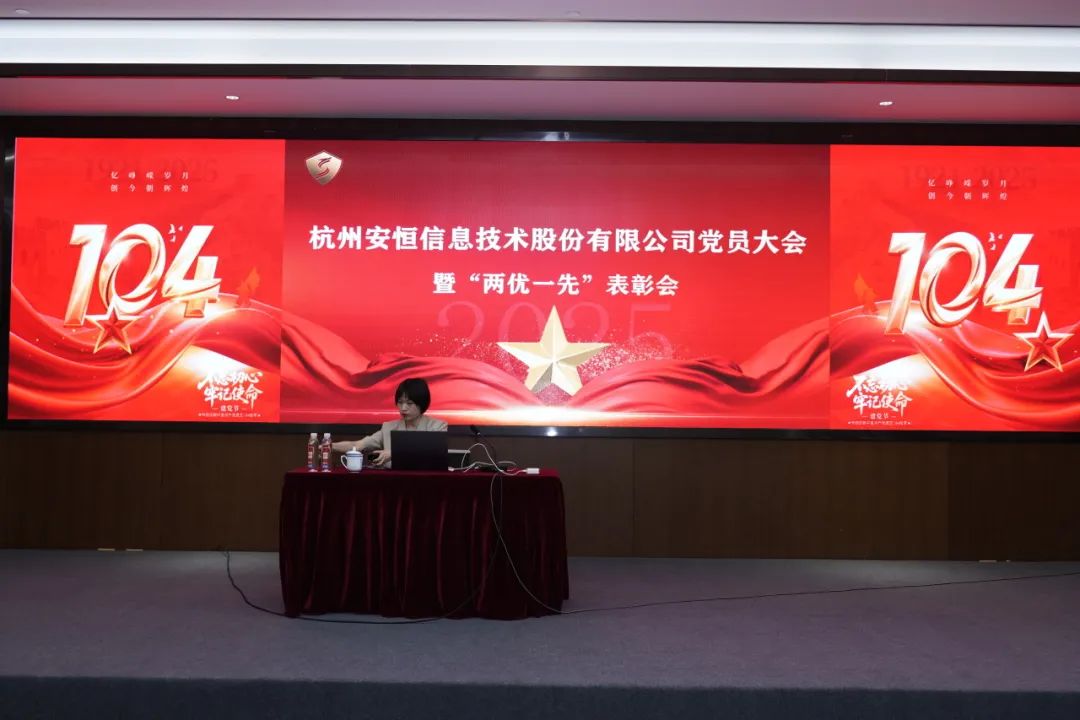 7 月 1 日,安恒信息党员大会暨 “两优一先” 表彰大会隆重召开,公司党员齐聚一堂,共同庆祝中国共产党成立 104 周年,回顾党的光辉历程,表彰先进典型,凝聚奋进力量。