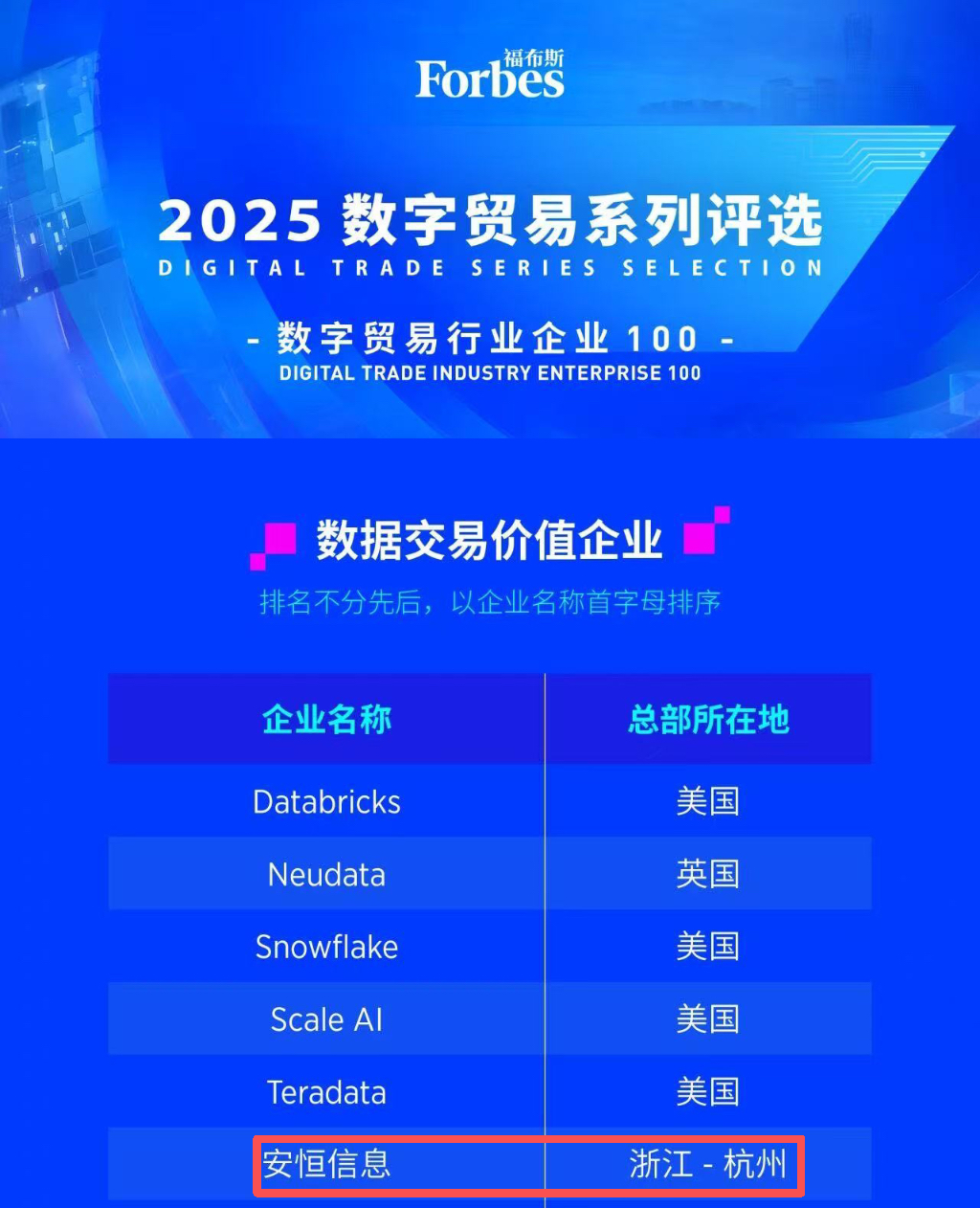 福布斯2025全球数字贸易行业企业100评选