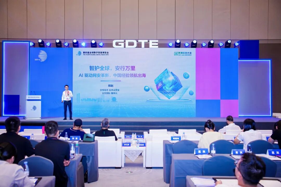 作为中国网络安全、数据安全领军企业之一,安恒信息(DAS-Security)以“出海先锋”的姿态,用“中国实战经验 + AI创新技术”的融合方案,给出了清晰且有力的回应。9月26日,安恒信息COO、安恒国际董事长郑赳在数贸会·西湖论剑大会上发布“智护全球 安行万里”战略级解决方案,具象化呈现了安全出海的“中国答案”,更勾勒出中国网安企业参与全球数字安全治理的实践路径。