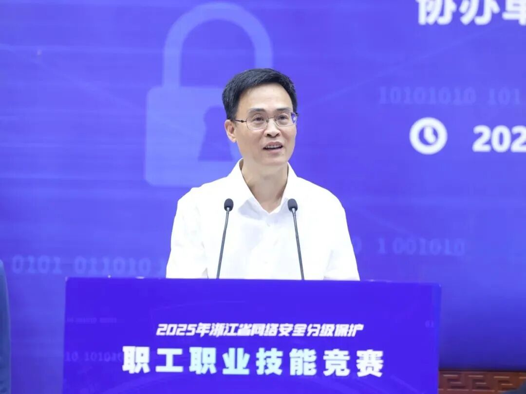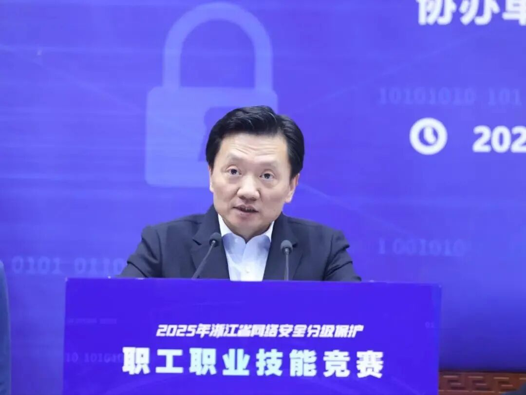 赋能实战,铸盾未来!10月19日,由浙江省国家保密局、浙江省总工会主办的浙江省网络安全分级保护职工职业技能竞赛在浙江大学玉泉校区圆满落幕。省委保密办主任、省国家保密局局长汪晓明,浙江大学党委常委、副校长陈刚,安恒信息董事长范渊等出席并致辞。