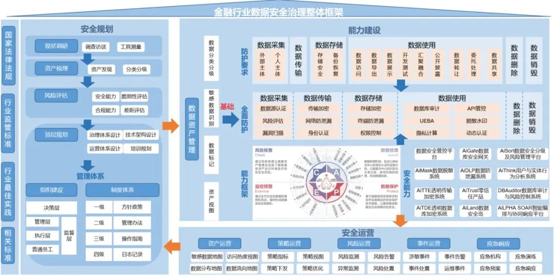 加强证券行业数据安全管理体系建设,在明确数据权责的基础上,对数据进行分类分级,并以数据全生命周期安全防护要求为重点,构建目标明确、职责清晰、层次分明、落地性强的制度规范。加强静态和动态数据资产的精确识别,以分级分类为基础,以数据生命周期安全为目标。实施“数据安全三不同策略”—对不同等级数据在不同应用场景下实施不同类型的防护措施。