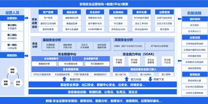安全运营是由一个全天候轮班执行运营工作的团队以及一套专注于帮助运营团队执行预测、防御、检测、评估并对威胁或事件进行响应的工具和运营管理流程组成。