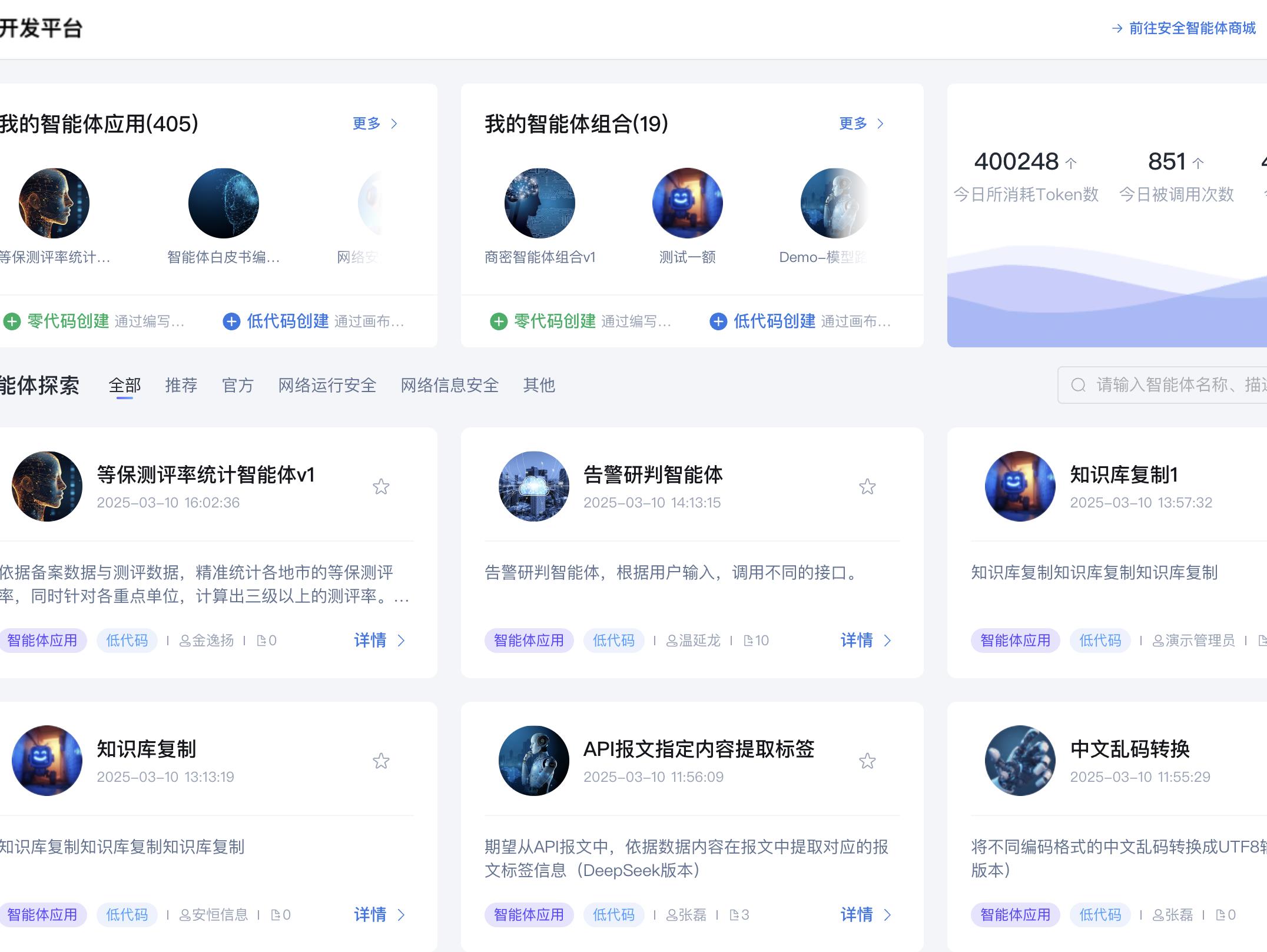 人才培养服务                                                                            全生命周期安全防护,智能体驱动效能提升,场景化联动管控。