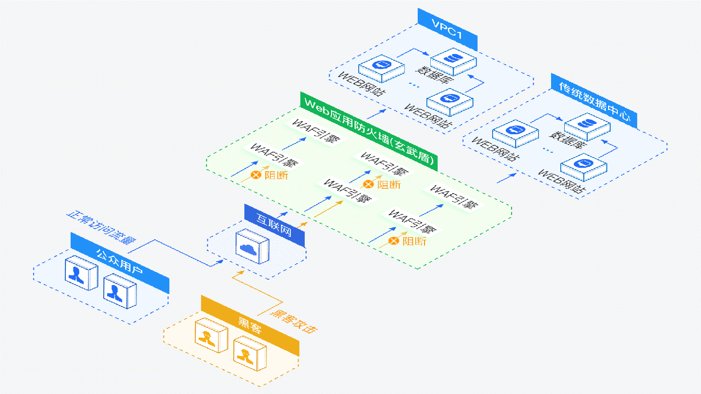 解决方案:多种防护策略,精准防护SQL注入、跨站脚本、网页木马、信息泄露、WebShell上传、第三方组件漏洞、CSRF跨站请求伪造、盗链等网络攻击。