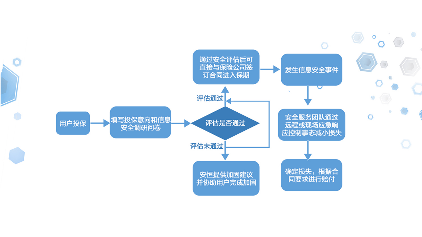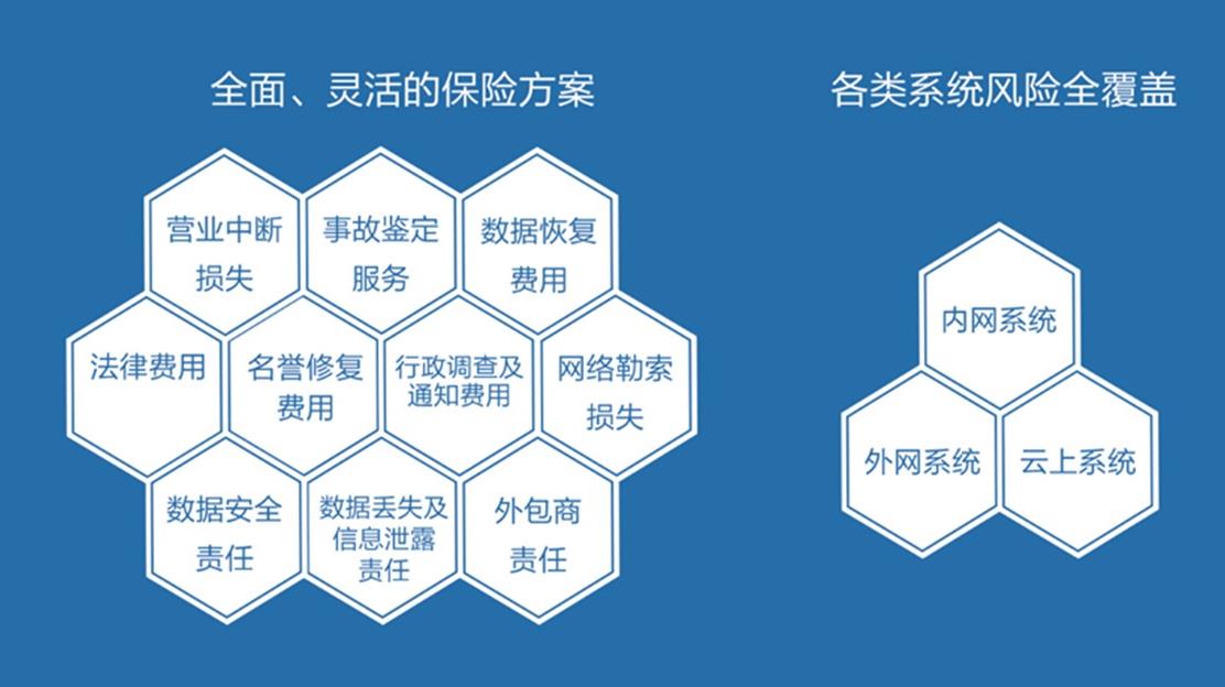 网络安全保险可覆盖第一方风险和第三方风险。针对第一方的保险责任主要针对投保企业自身的资产,包含网络安全事件造成的业务中断损失、网络勒索损失、数据泄露损失、企业名誉损失、法律费用等;针对第三方的保险责任主要包括第三方数据的泄露、丢失、损坏等风险,累计赔偿限额最高可达亿元。 安恒信息联合国内头部保险公司推出的网络安全保险,可以实现对用户信息系统事前预防(风险评估、系统加固)、事中防护(实时监测、应急响应)、事后补偿(保险赔付)的全周期保障。用户可根据自身需求和风险偏好,选择合适的保障范围和保险额度。