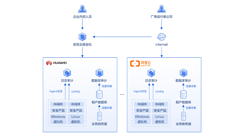 基于安恒云在线SaaS服务,选取其中堡垒机、日志审计、数据库审计三项核心安全审计能力,组合成针对企业IT系统层面全程的“审计套装”,实现覆盖《等级保护》中多项审计要求的内容。