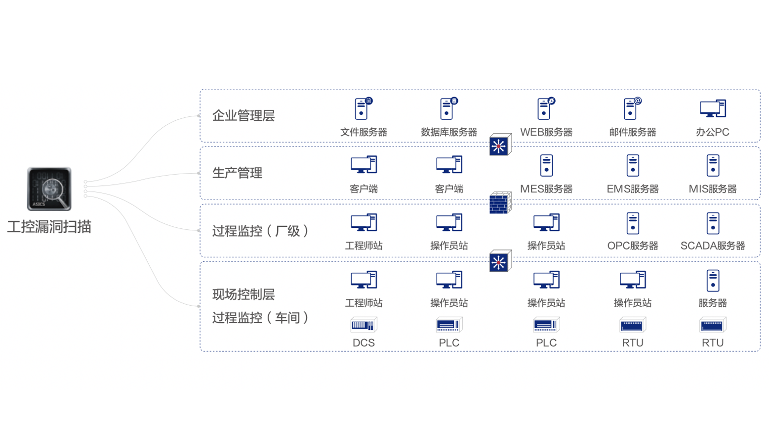 支持覆盖西门子、GE、施耐德等20+主流工控厂商的PLC、RTU、DCS、SCADA、HMI、上位机软 件、数据采集模块、DTU、继电保护装置在内的多种工业控制设备及系统的识别扫描与漏洞检测。