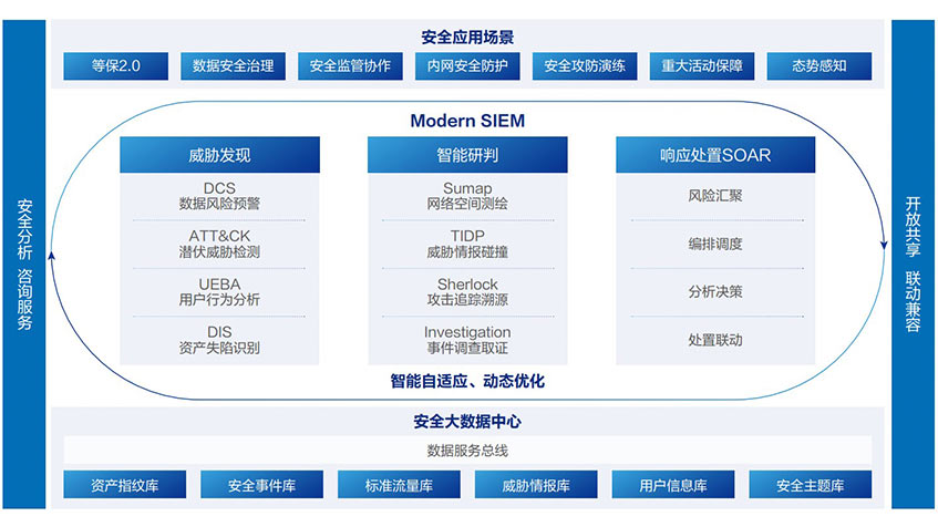 构建大数据中心内网资产自发现能力,实现对内外部威胁的智能分析并准确快速触发安全告警。深度分析发现潜在的威胁并实现预警通知快速响应解决重大安全问题。对用户异常和敏感行为实现智能检测,动态鉴别用户可信度并分配用户权限,防范越权操作行为。基于海量流量分析发现资产,自动建立资产配置仓库,杜绝安全隐患。