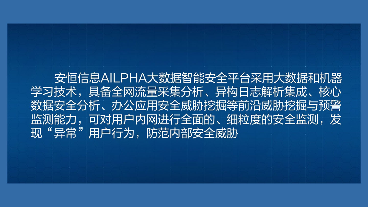 提供基于访问特征学习的异常行为检测、基于统计特征的异常行为检测,快速发现核心业务系统、数据库出现非法访问和链接