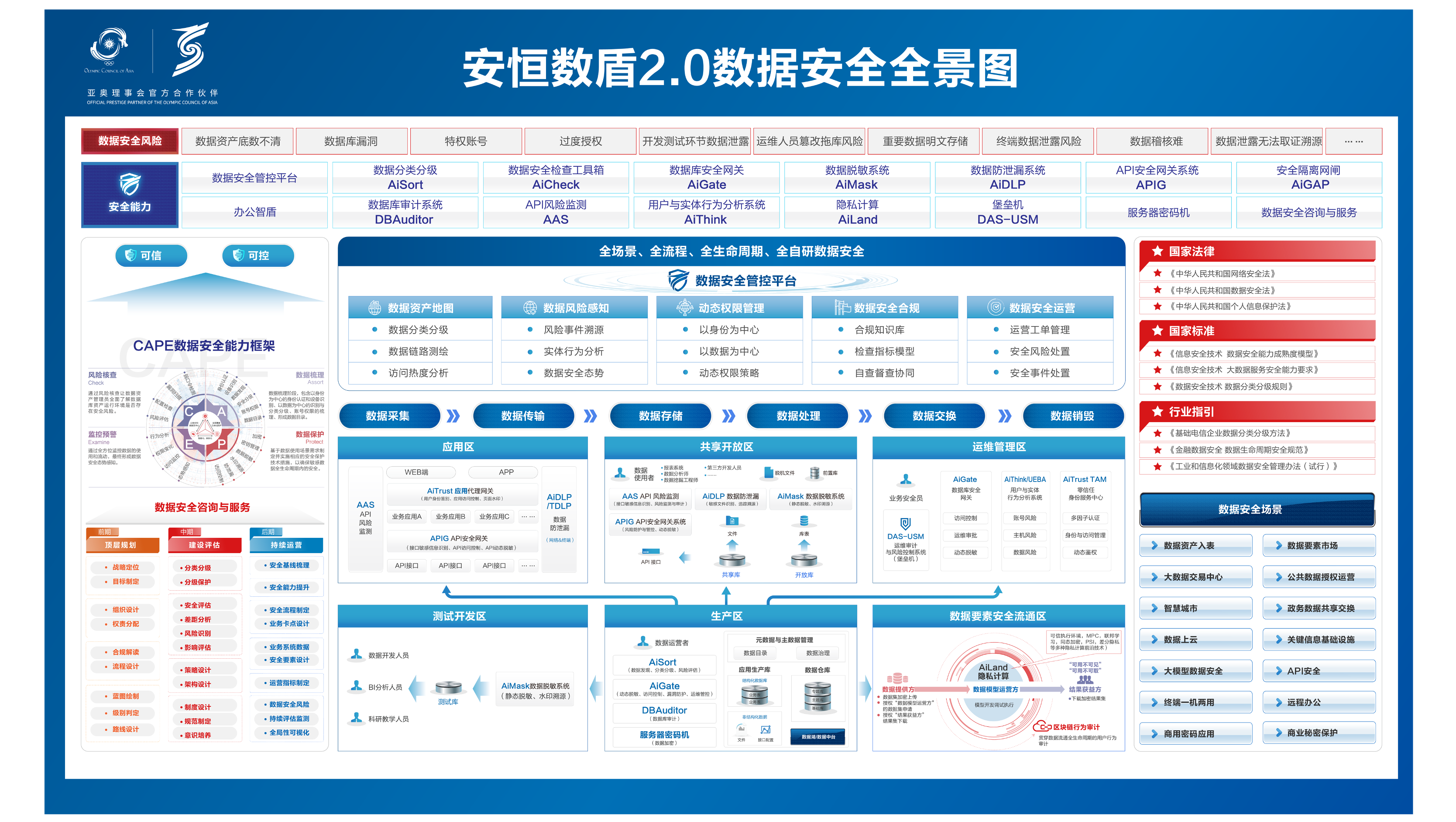 立体化防护体系:通过组织、制度、场景、技术、人员等自上而下的落实来构建立体化的数据安全防护体系。 -