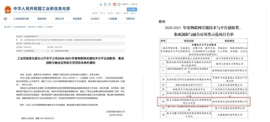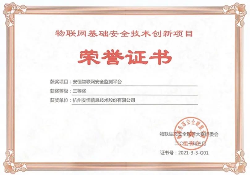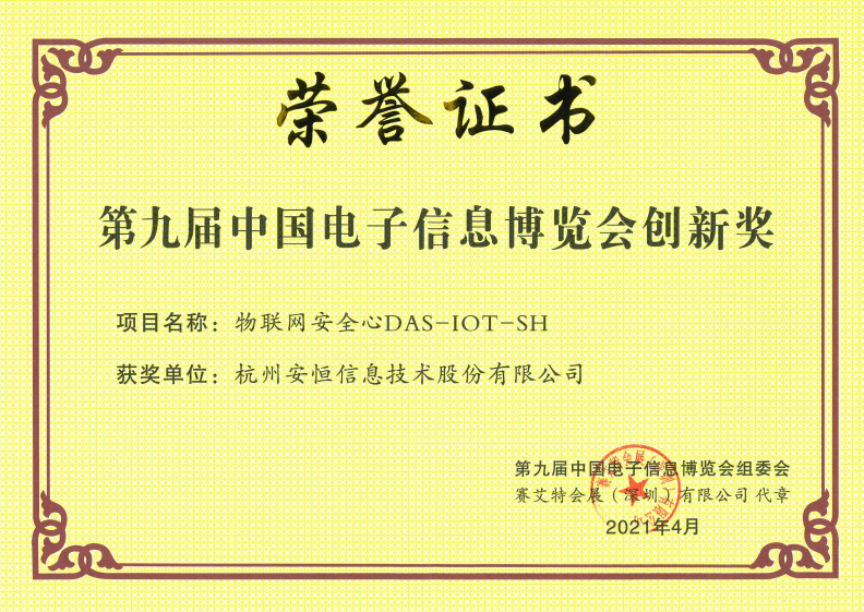2021年,安恒信息物联网安全始终专注于打造精品项目,凭借自身过硬的产品实力,连续斩获工信部等单位颁发的多项大奖。