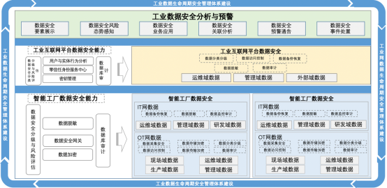 通过实时监测、集中管理、数据分析进行安全监测;通过安全评估、漏洞检测、态势分析进行安全预警;通过区域隔离、行为审计、数据加密进行安全防护;通过安全预警、自动编排进行响应处置,最终形成工业互联网安全运营管理闭环。