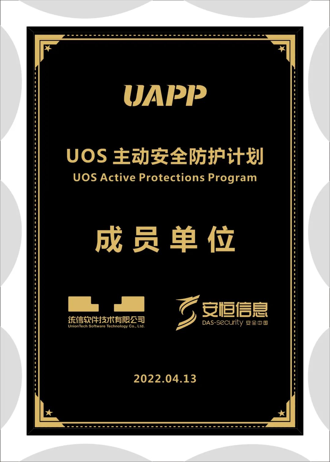 回顾4月13日统信UOS主动安全防护计划(UAPP)发布会,安恒信息作为统信软件的重要合作伙伴出席会议,且成为首批加入UAPP的成员单位,在会后陆续公开了多个联合信创解决方案详细资料。安恒信息将与统信软件一起,共同打造具备世界顶级安全水平的中国操作系统,共建信创基础软件平台安全底座。